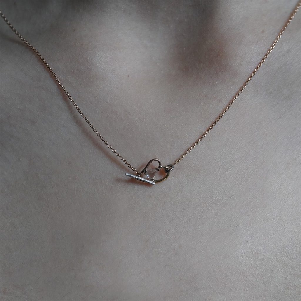 線材と呼ばれる一本の線から、曲げ、ロー付けと言った基本的な技術に、レーザーロー付けなどを応用しボンドを使わない100%ジュエリーを心掛けてハンドメイドで作っています。