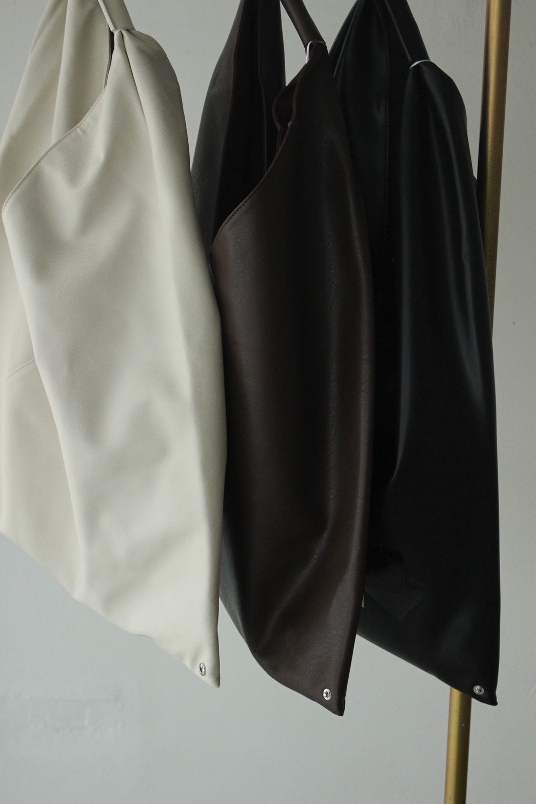 滑らかで深みのある色合いが魅力的なPUレザーで仕上げられたトートバッグ。