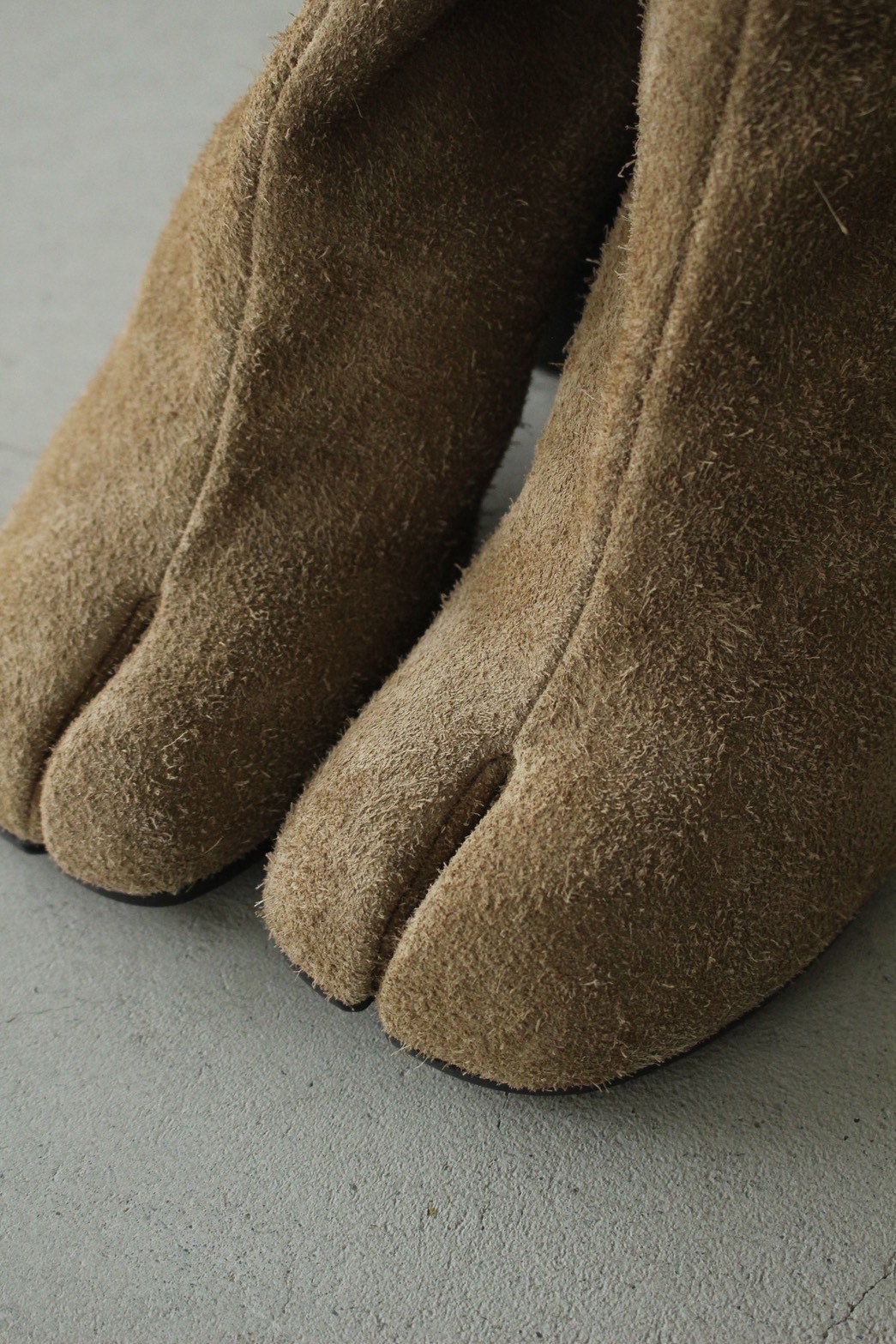 スウェード素材を使用したタビブーツ。