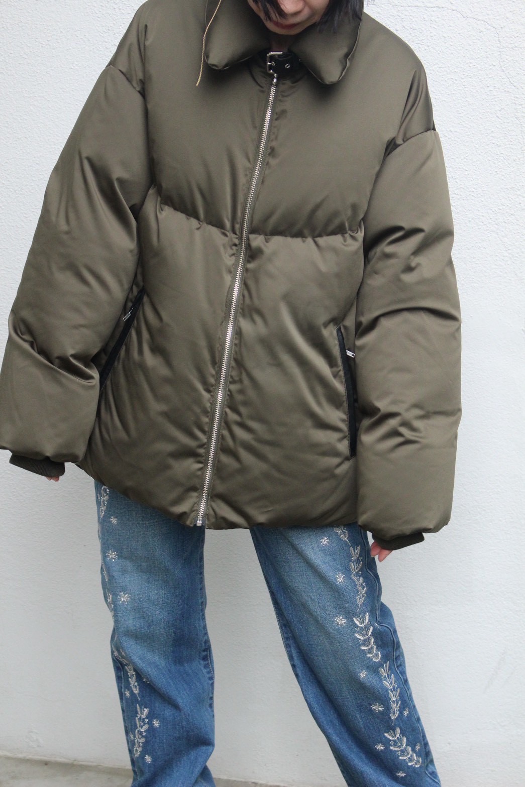 Satin down coat / 126,500yen