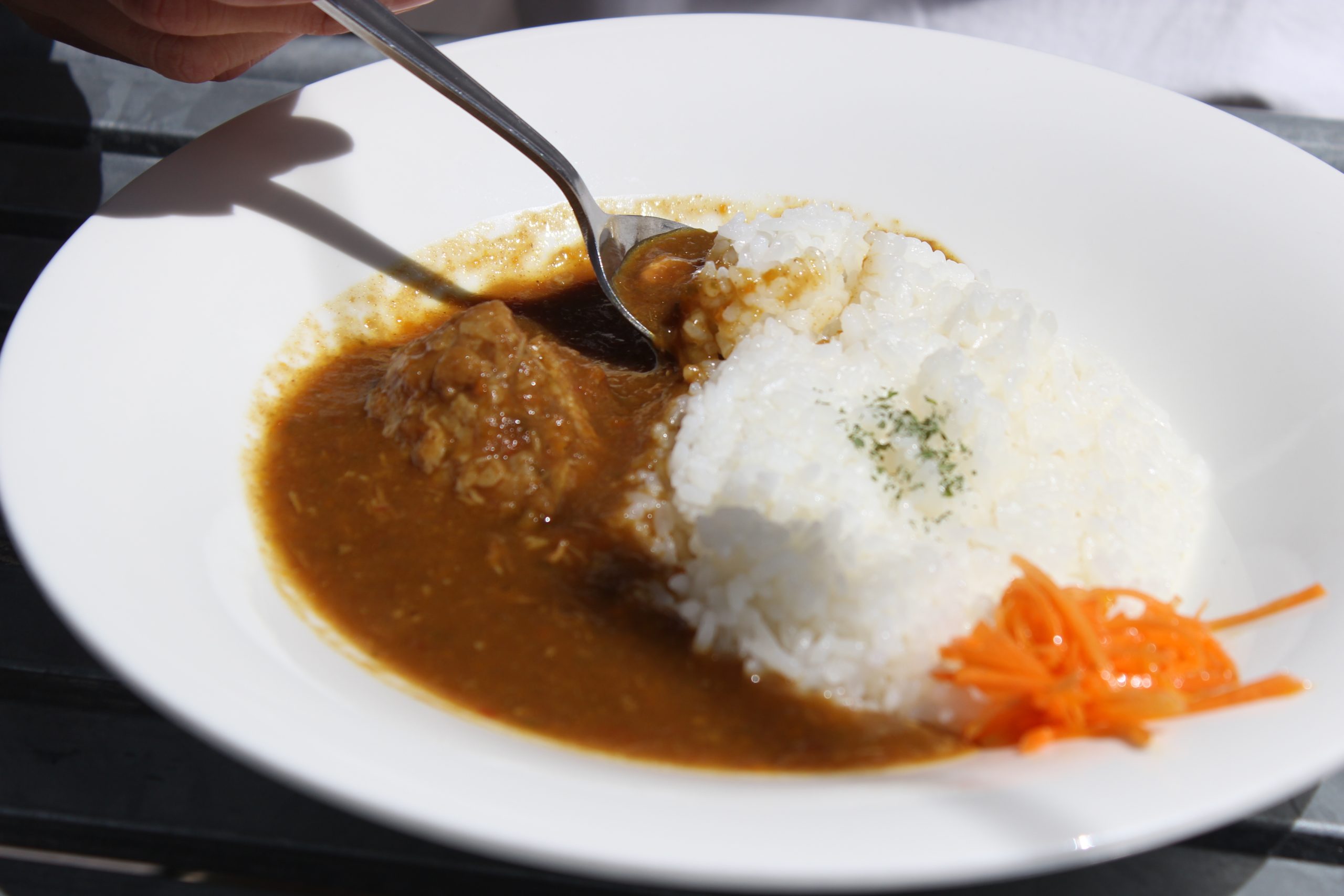 長時間じっくり煮込んで野菜、果物、お肉の旨味が全てルーに溶け出した味わい深いカレー。