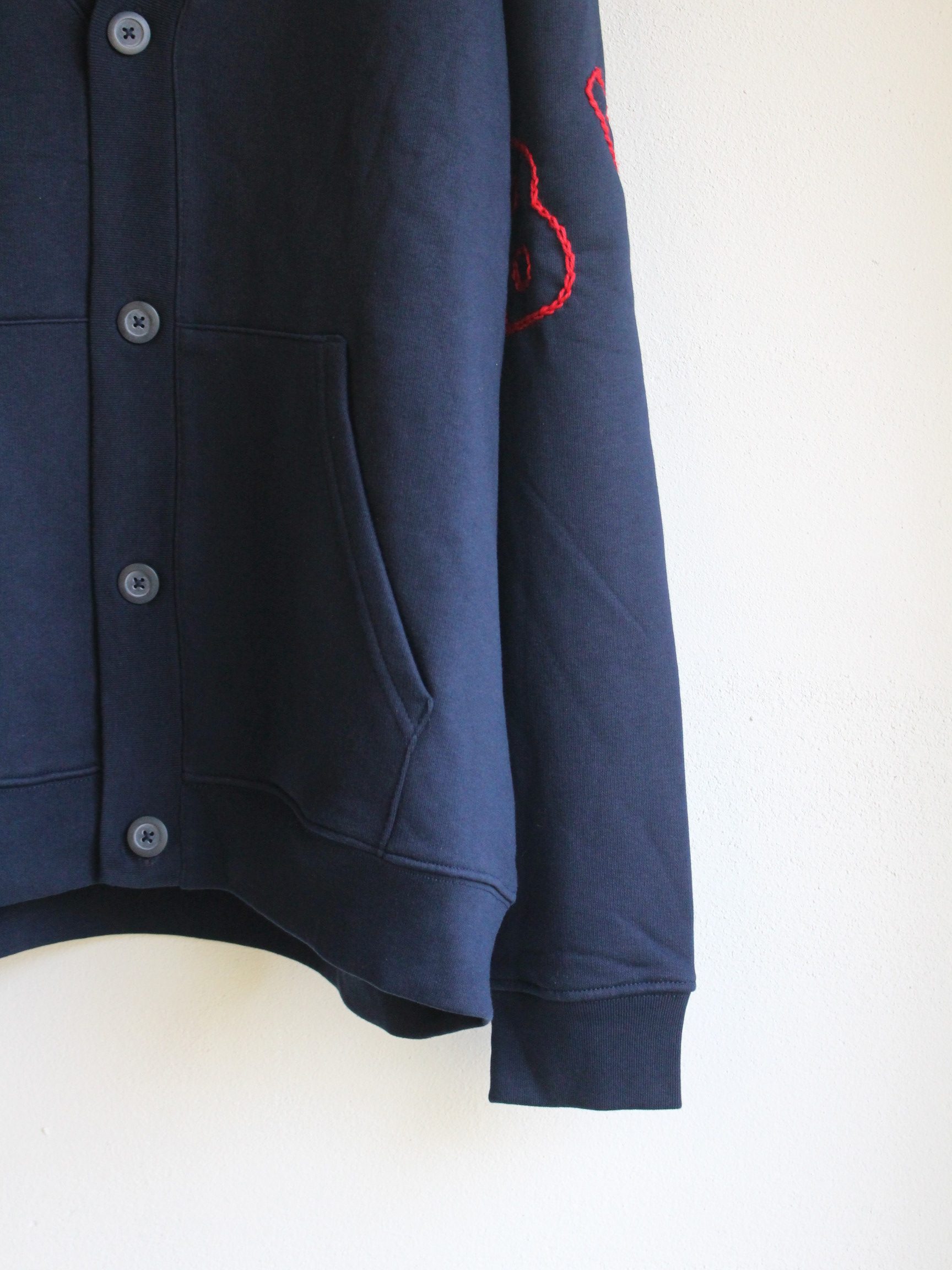 刺繍とプリントワークが映えるスウェットカーディガン。