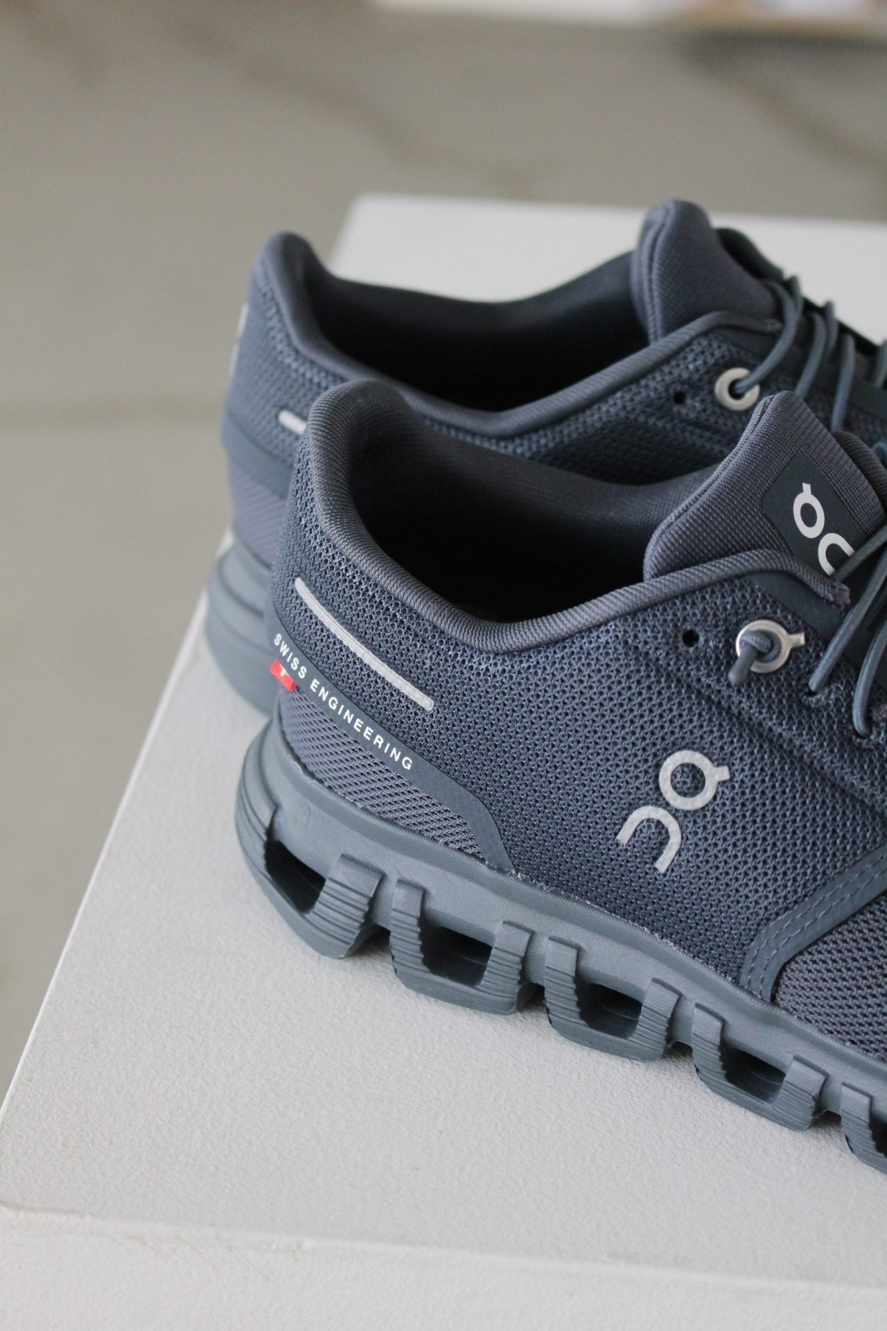 新色の深いネイビー×ストーンの配色が、都会的で落ち着いた足元を演出します。