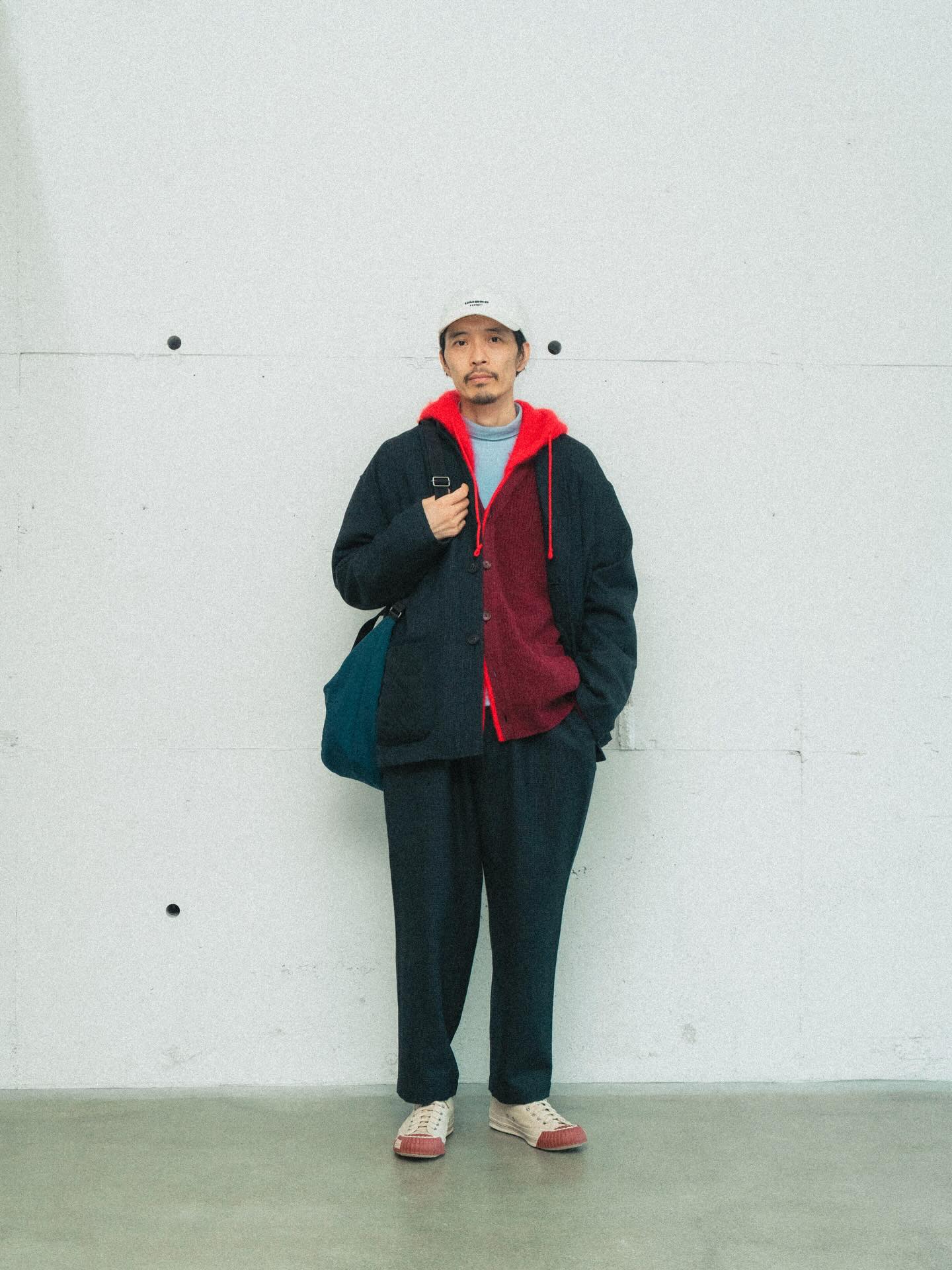 強いデザインでありながら、合わせるアイテムをシンプルにすればスタイリングは意外と成立しやすく、主役として着ることを前提に設計されたdoubletらしいアウター。