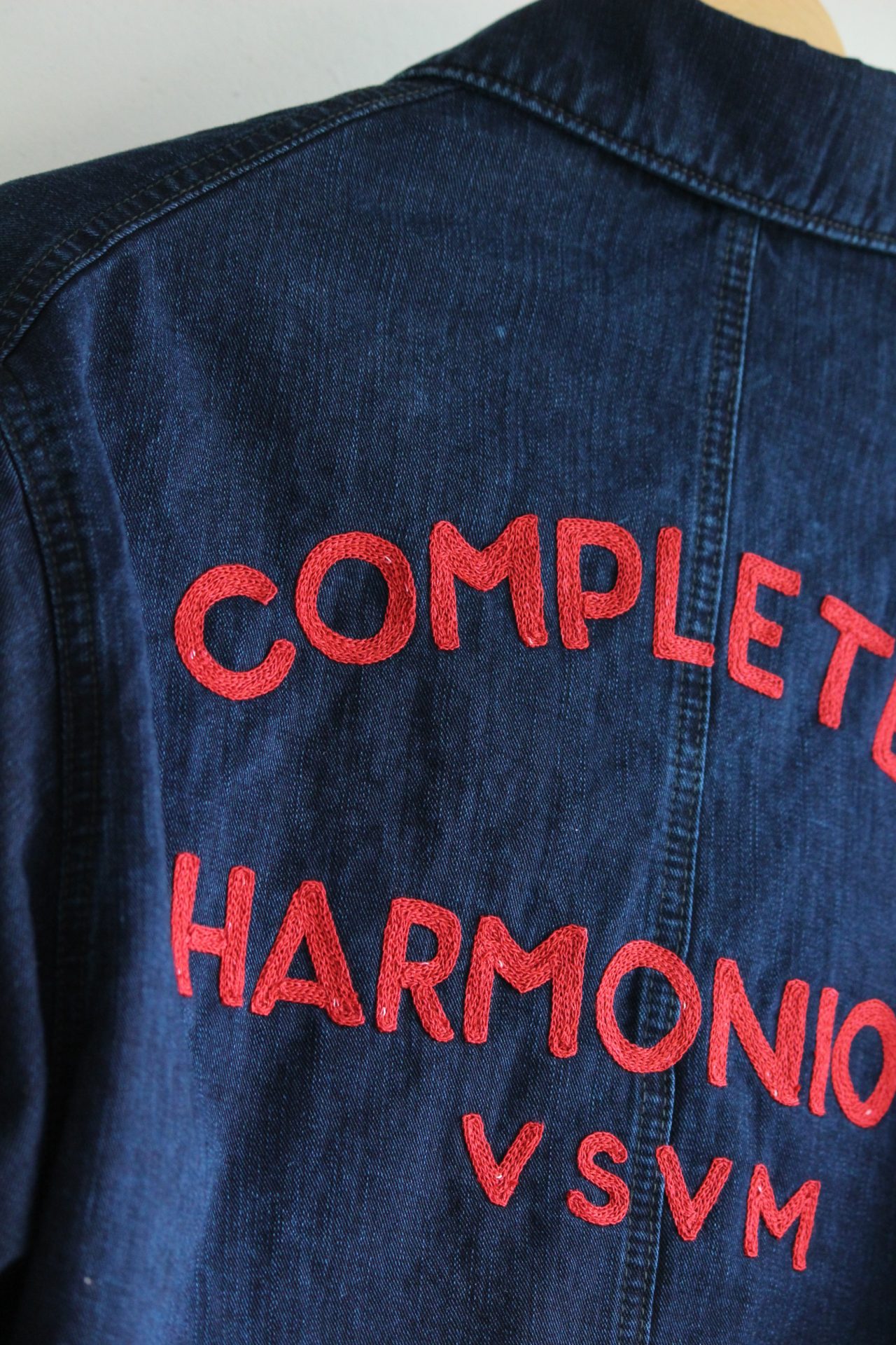 ダメージ加工による長年着込んだような風合いに、オリジナル鉄製ネオバボタンや刺繍ディテールが加わり、visvimらしいクラフト感と存在感を備えた一着に仕上げられています。