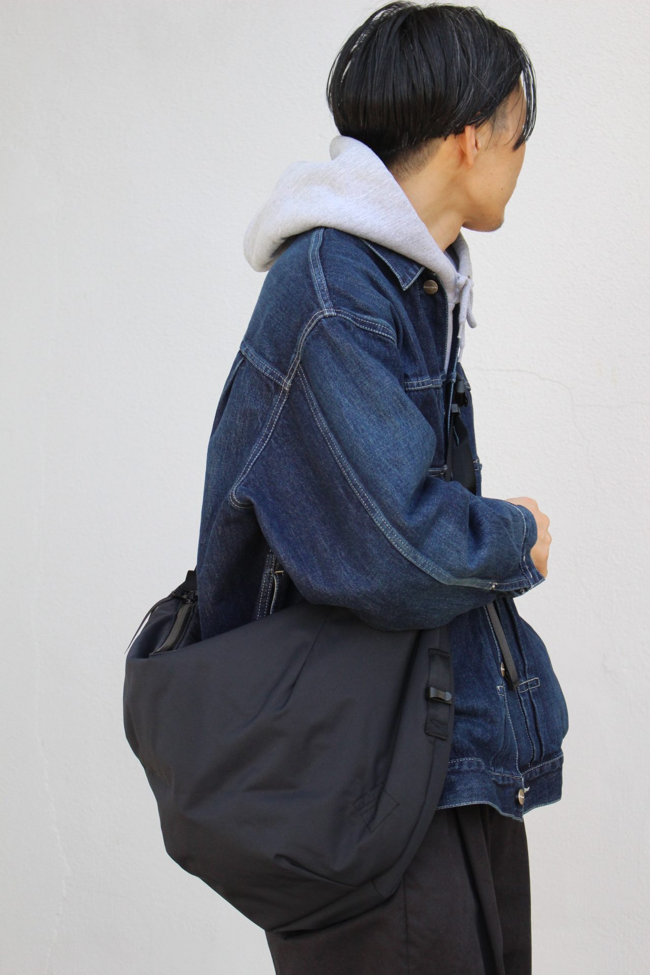 Graphpaper とコラボレーションでは三日月の造形をショルダーバッグに落とし込んでいます。表生地に軽量で耐久性に優れ、撥水性にも長けた ブランコフオリジナルナイロン素材を使用。内装にはファスナー付きの内ポケットを完備。毎日持ち運ぶ小物の収納に便利なスモールサイズと大容量のラージサイズの展開となります。
