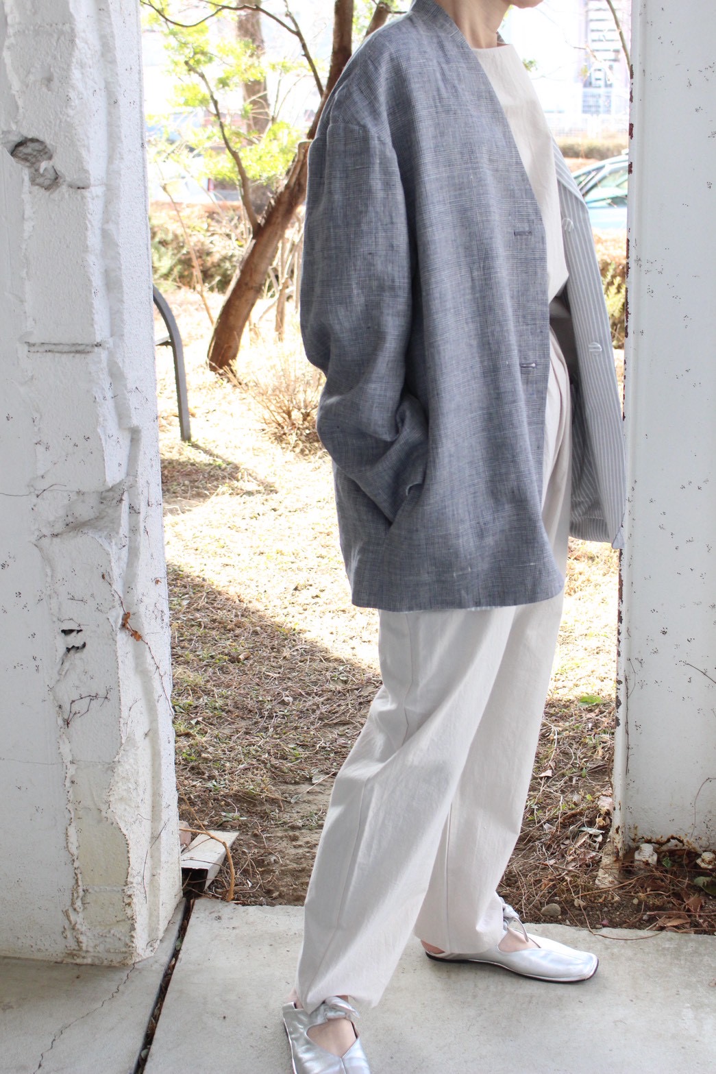 素材は高密度で織り上げたコットンリネンラミー。