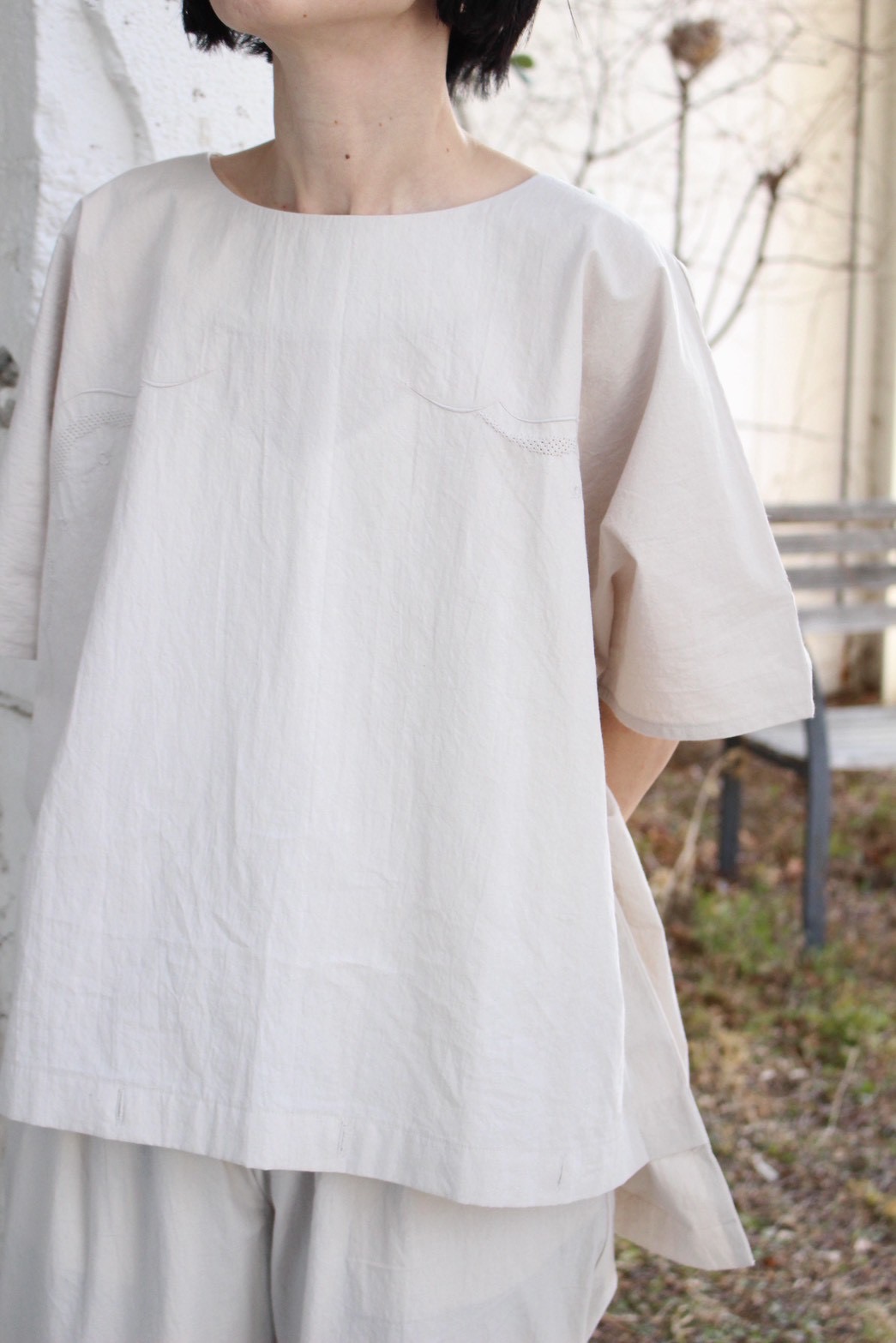 アンティークの枕カバーからインスピレーションを受けたトップス。