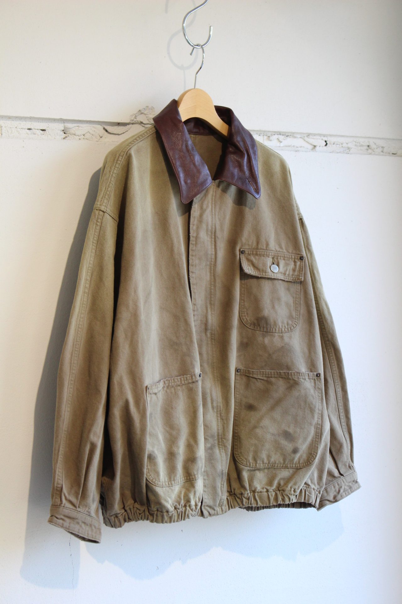 襟に配したカウレザーが、無骨さの中に上質さを感じさせる一着です。
