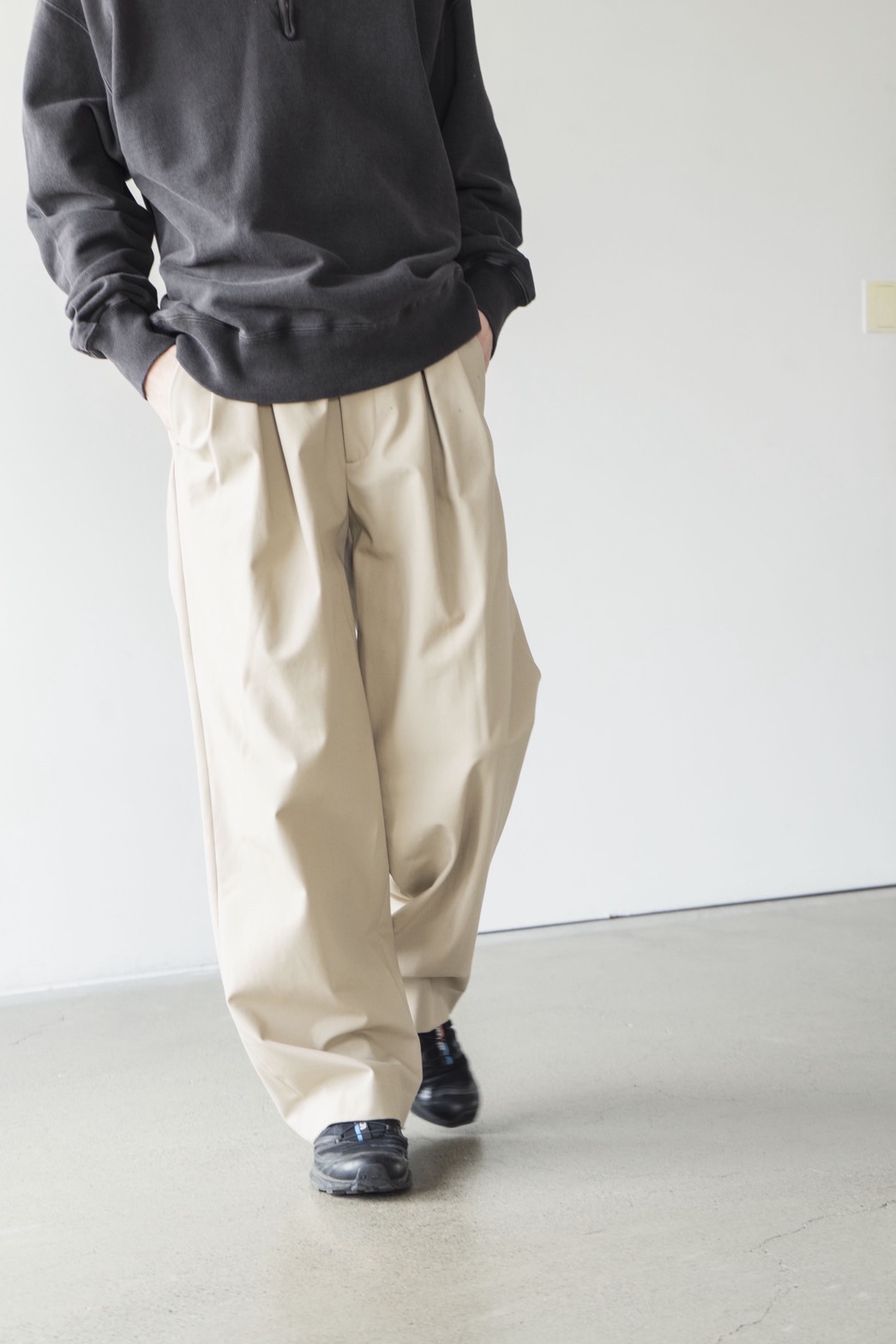 COTTON CANVAS – INVERTED PLEATS PANTS / 39,600yen