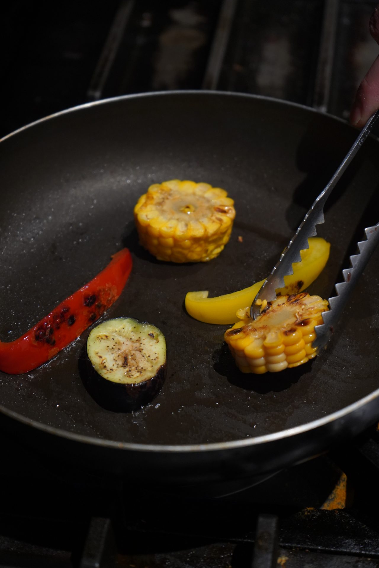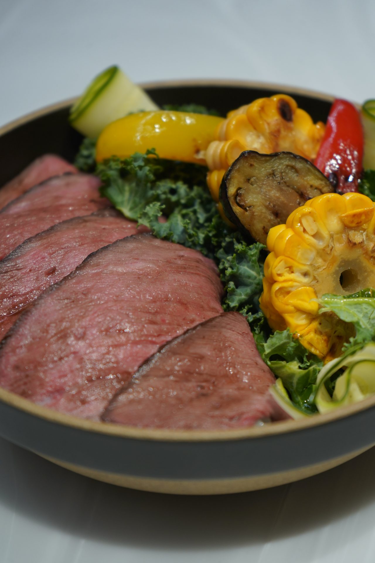 地元の片山農園のフレッシュなケール、野菜本来の味わいを楽しむため塩のみでソテーしたグリル野菜。