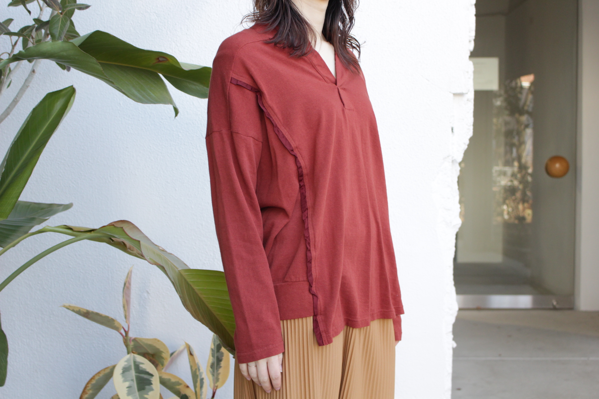 ワッフルパンツやデニムなどとのレイヤードスタイルもお楽しみ頂けます。
