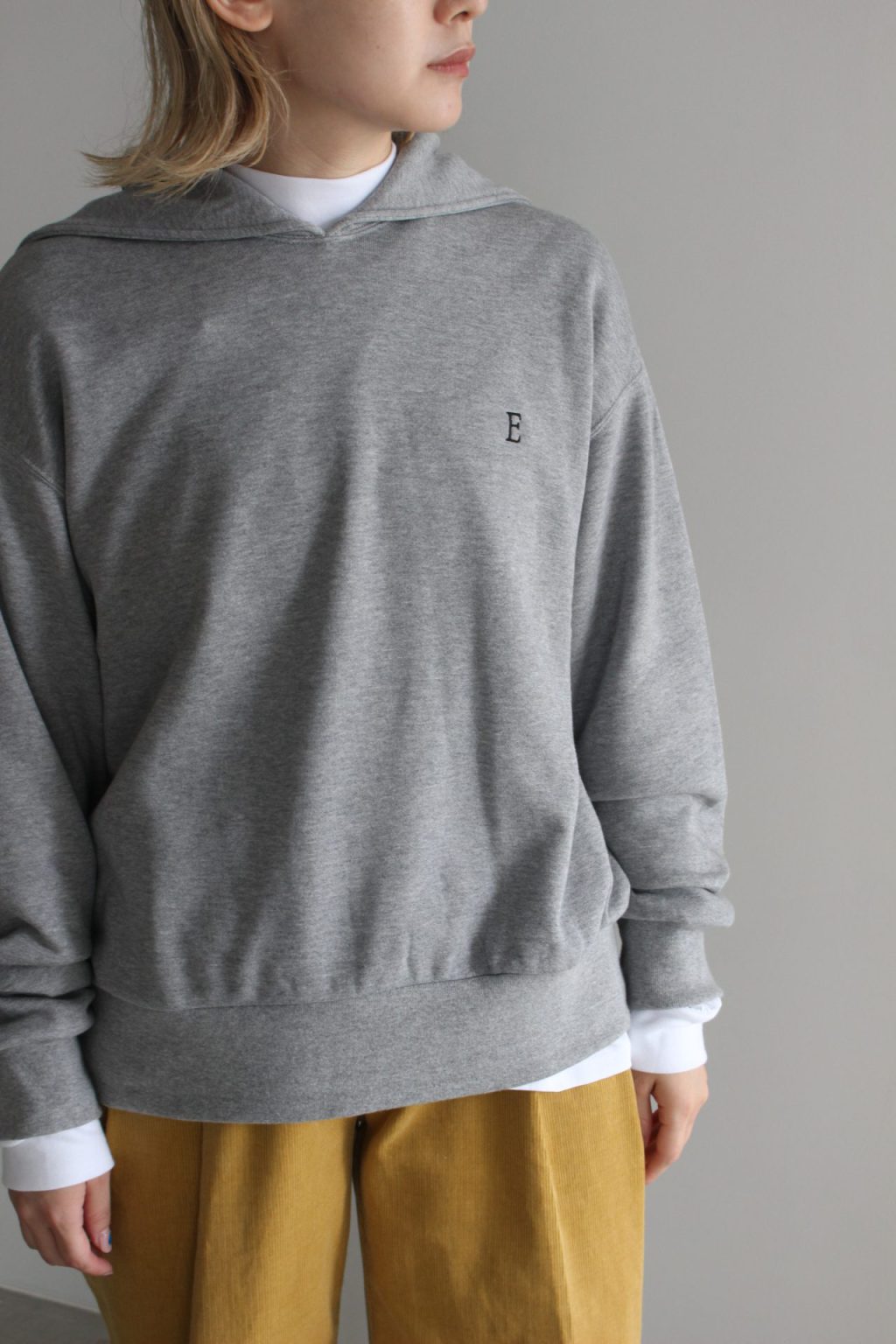 ブランドのロゴ “E” がデザインされたセーラーカラーのスウェット。