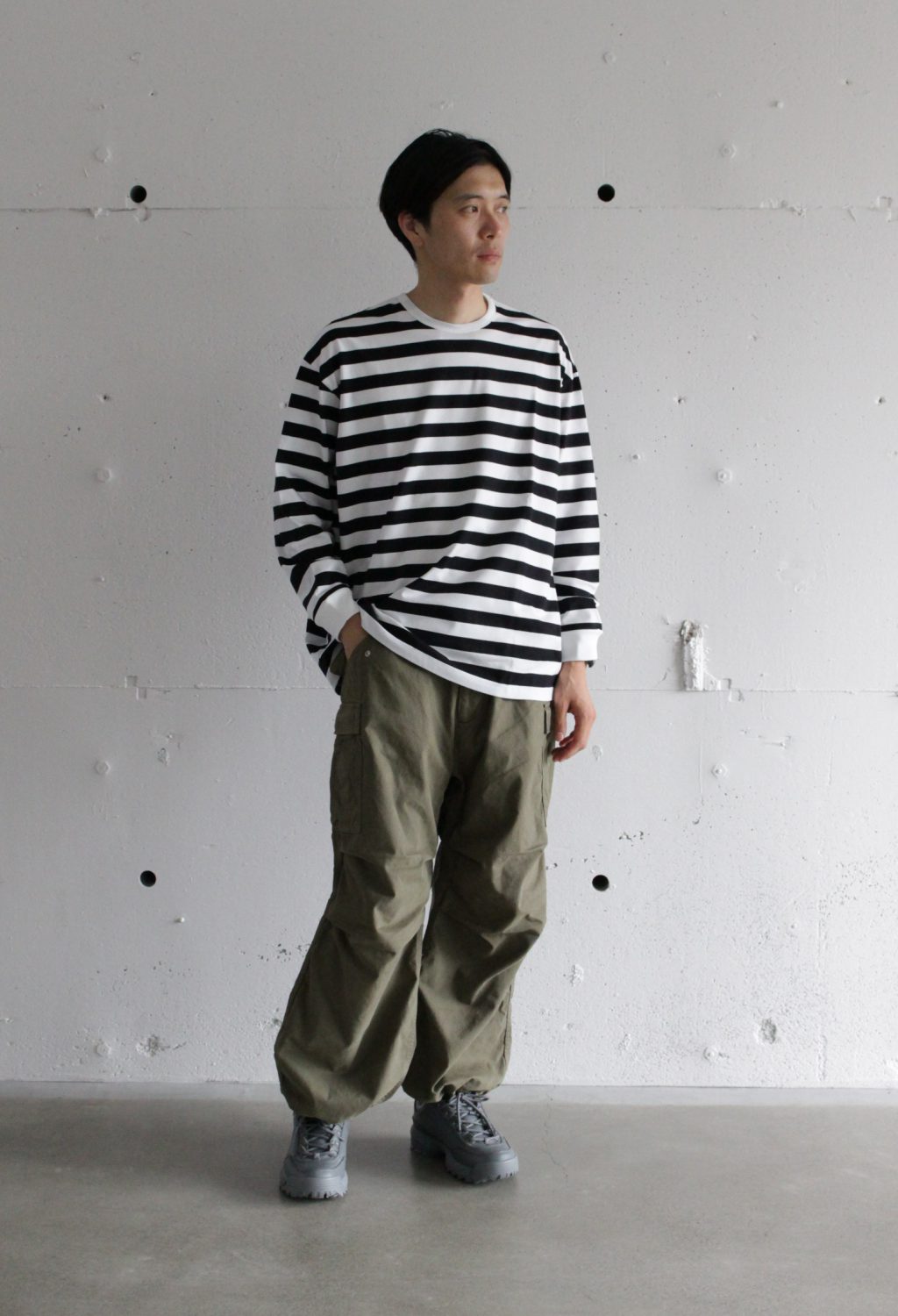 ハリ感のあるポリ混のコットン素材を使用したラインパンツが入荷致しました。