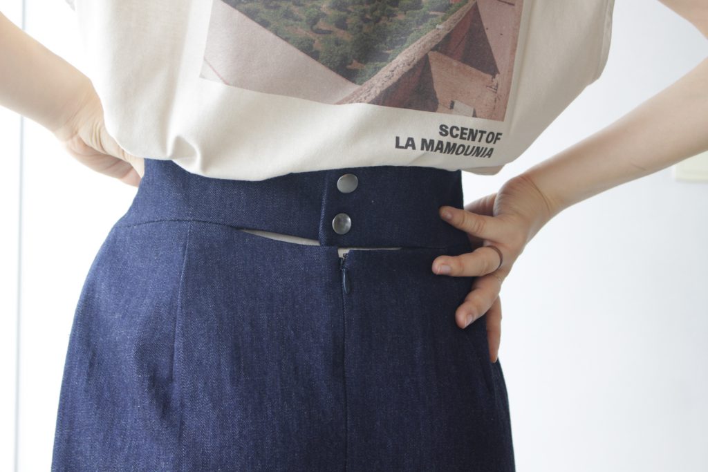裾のリブがカットされ、さらにリボンが内蔵されているので様々なアレンジをお楽しみ頂けます。