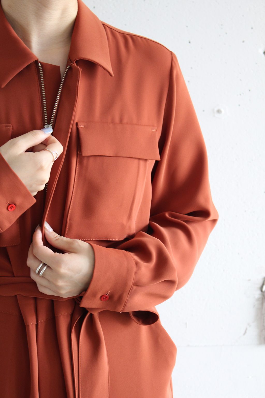 カジュアルになり過ぎず綺麗なドレープで女性らしい雰囲気を感じさせてくれ、ワッシャー仕上げによる独特な風合いが特徴的です。