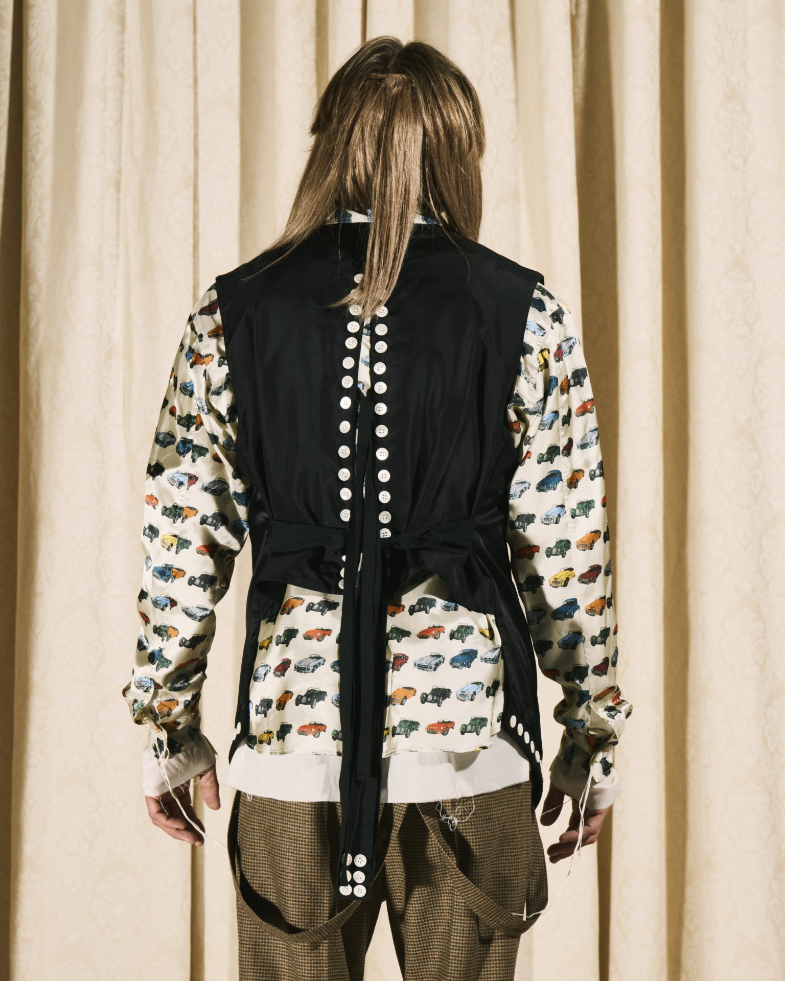 後身頃には腰から裾にかけてスリットが入っておりクラシックなアイテムをモダナイズしています。