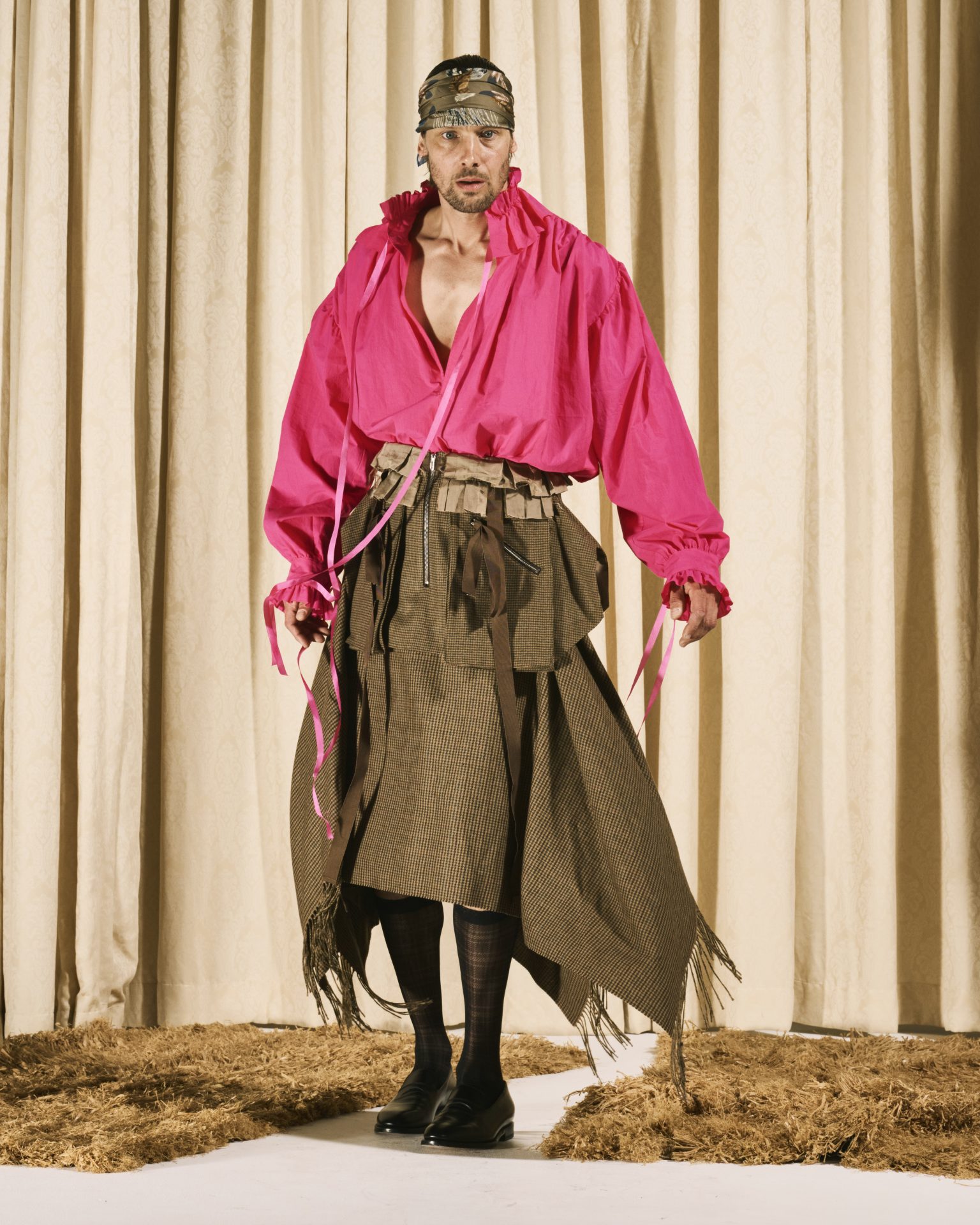 スカートは日本のヤンキー文化に根付く“スケバン”のプリーツスカートを、ホールガーメント技術でニットに落とし込んだ一着。
