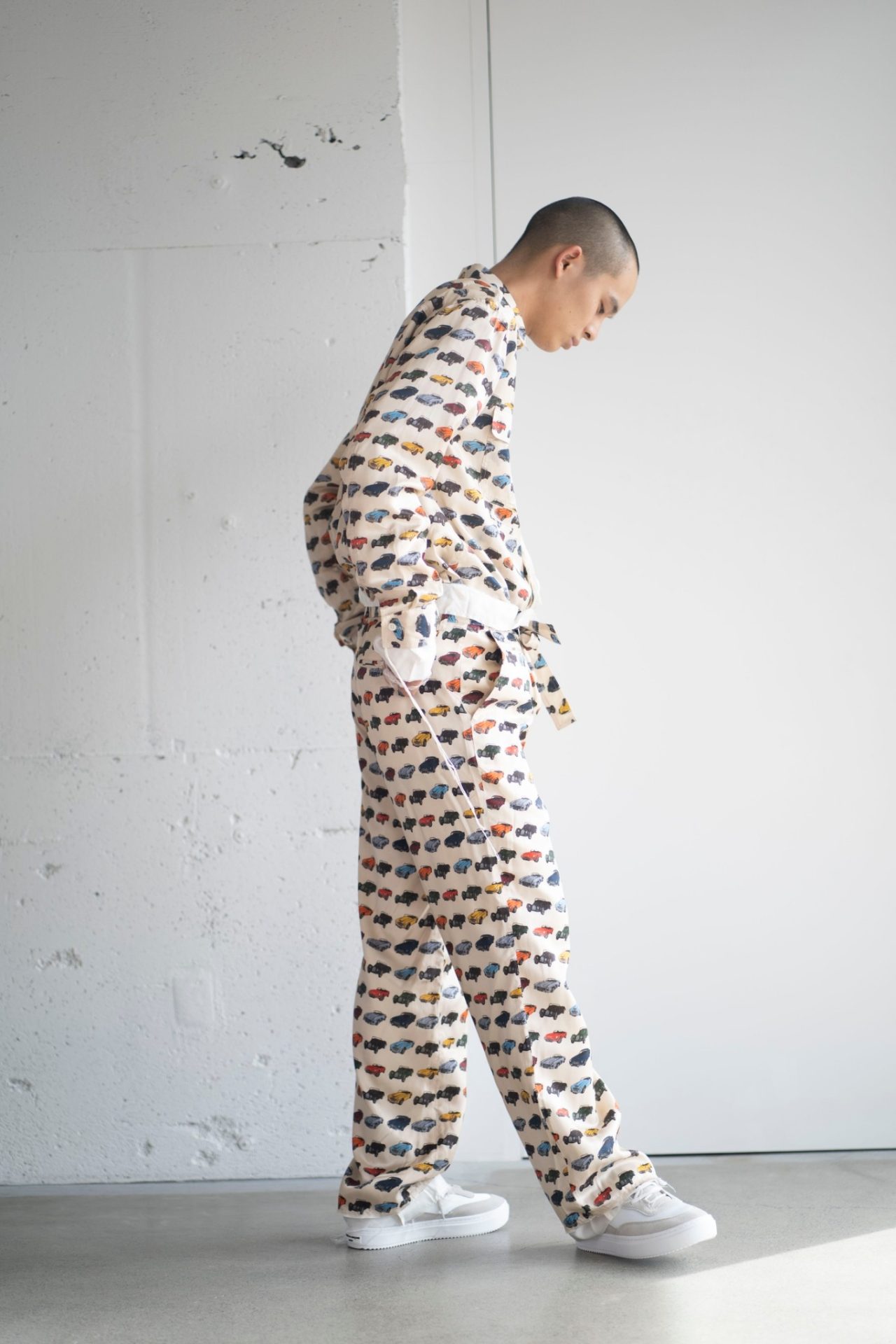 オリジナルの柄がプリントされたシャツとパンツはセットアップでもご着用頂けます。