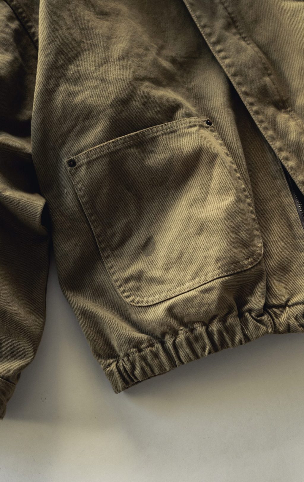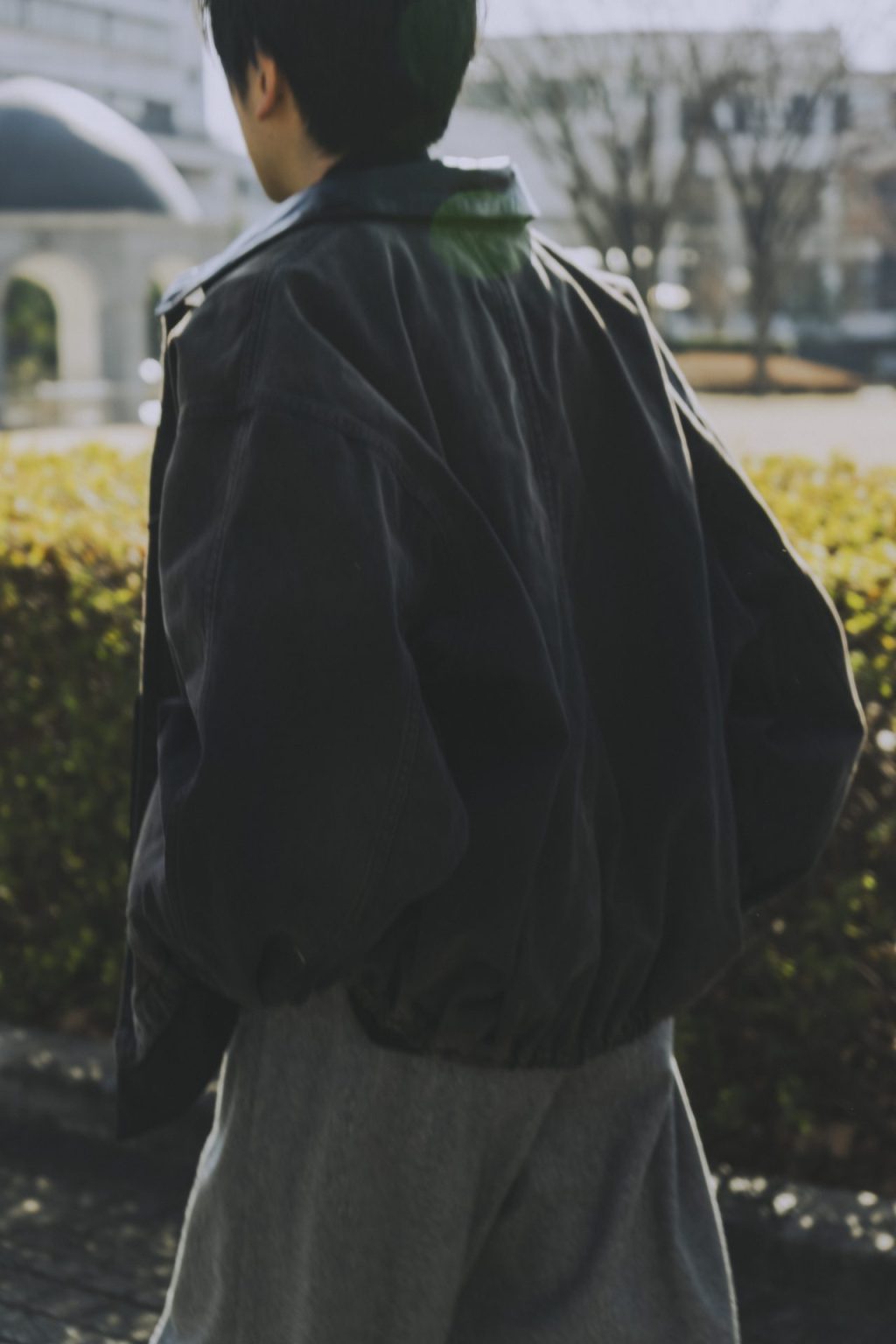 ヴィンテージ感のある生地加工を施したボンバージャケットです。アームホールを深く、袖まわりにゆとりを持たせることで、丸みのあるボリュームシルエットに仕上げました。
