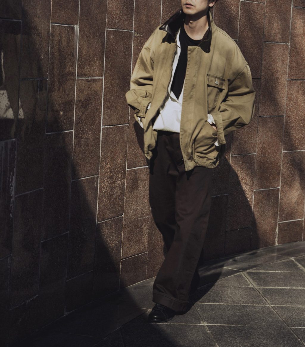 ジャケットはオーバーサイズながらも、綺麗な落ち感と縦方向のシルエットが出るように計算されたシルエットで、着用した際の高揚感が堪りません。当店でも何度もセレクトし、とてもご好評いただいているアイテムです。