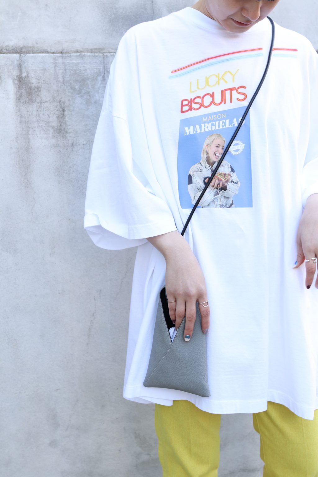 フロントからバックにかけて、レトロなムードのクールなMargiela 6 Tourプリントがあしらわれています。