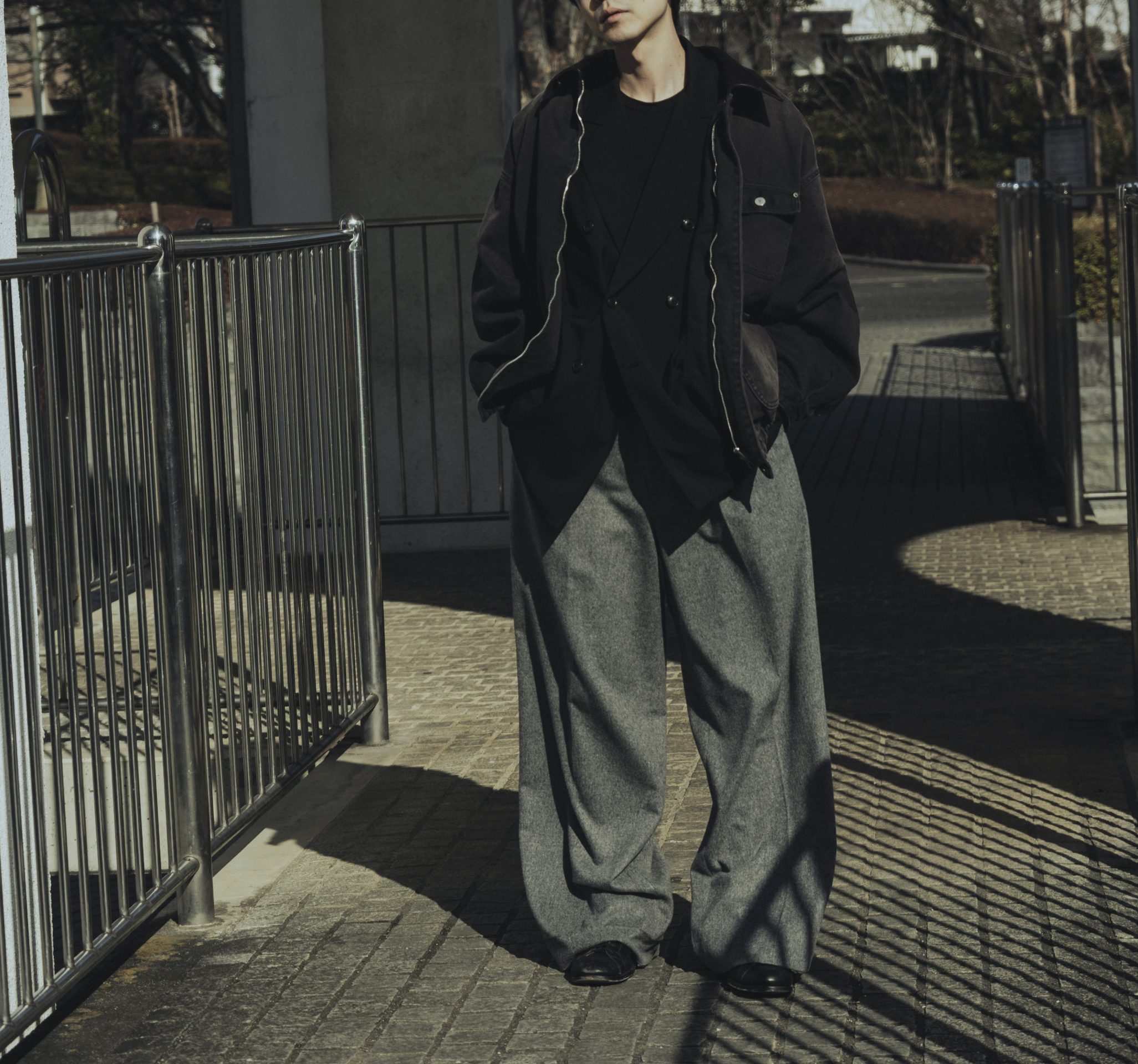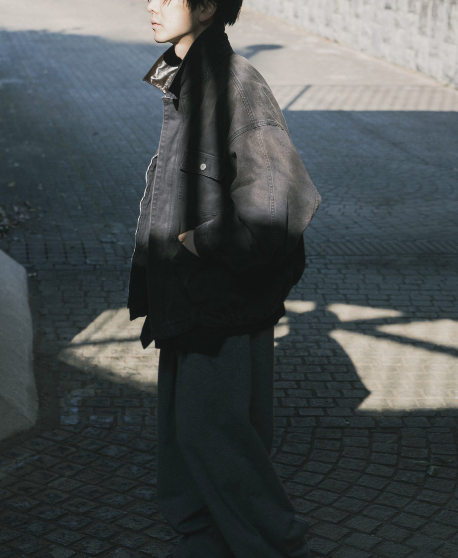 26SSコレクションの中でも特に印象的だった一着をベースに、ボディ生地・襟レザーの素材とカラーを変更。