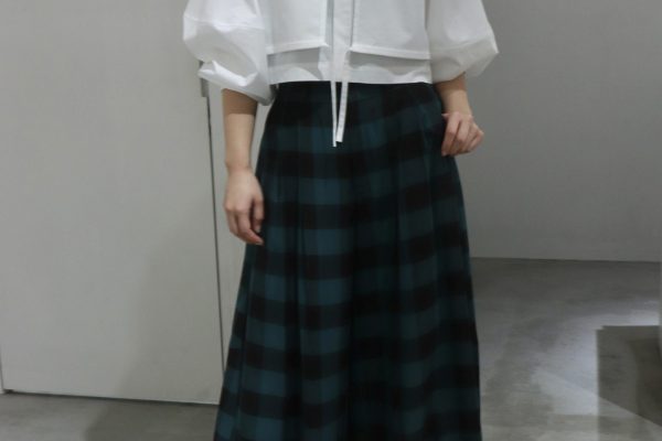 首元からのタックがふんわりとしたシルエットを作り、袖口は大きく開いたデザインで羽織としても重宝します。