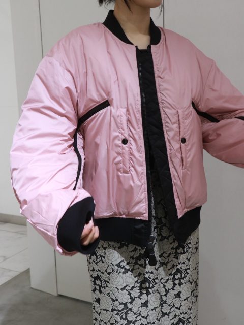 袖口から胸元にかけてのジップが特徴のMA-1ジャケット。