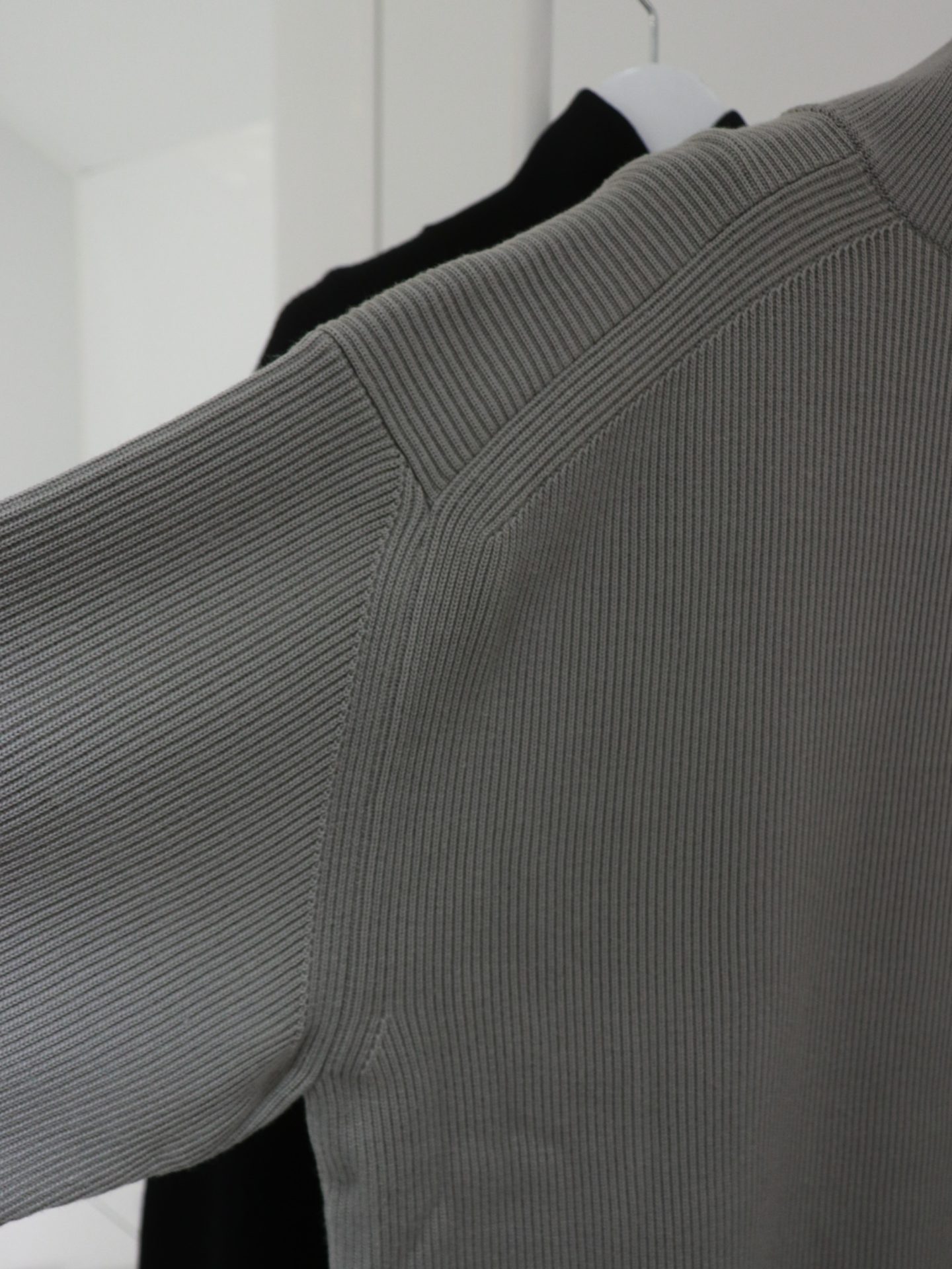 カーディガンのような深めのVネックとリラックスシルエットが特徴です。