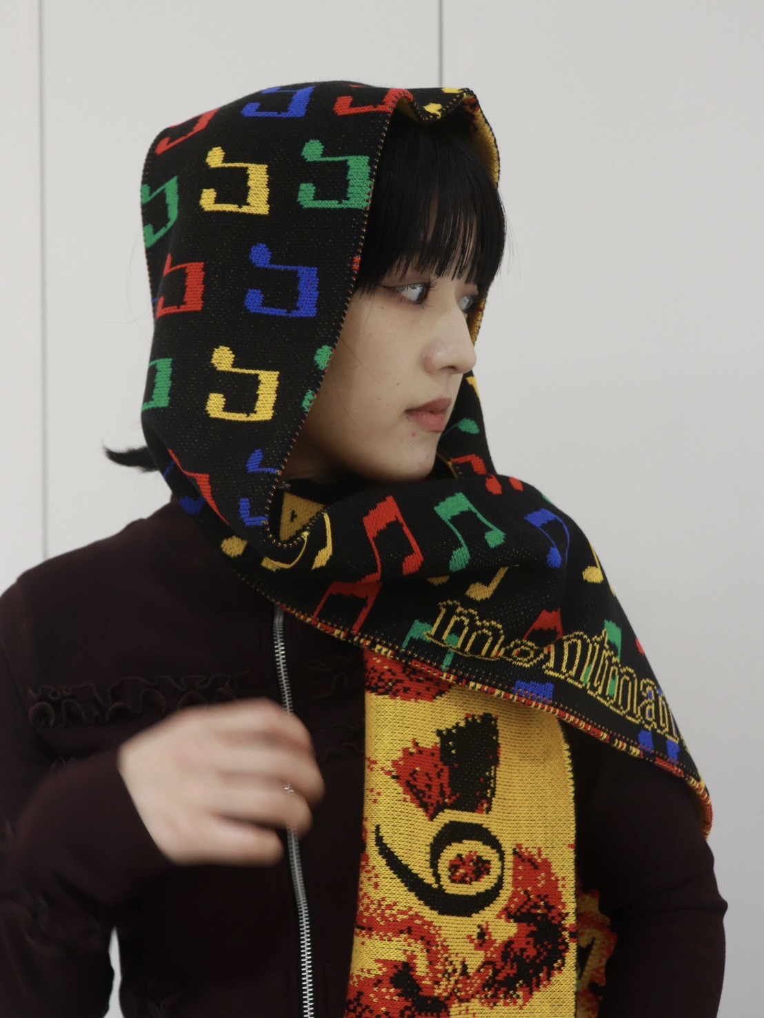 片面がすべて音符デザインのスカーフ。