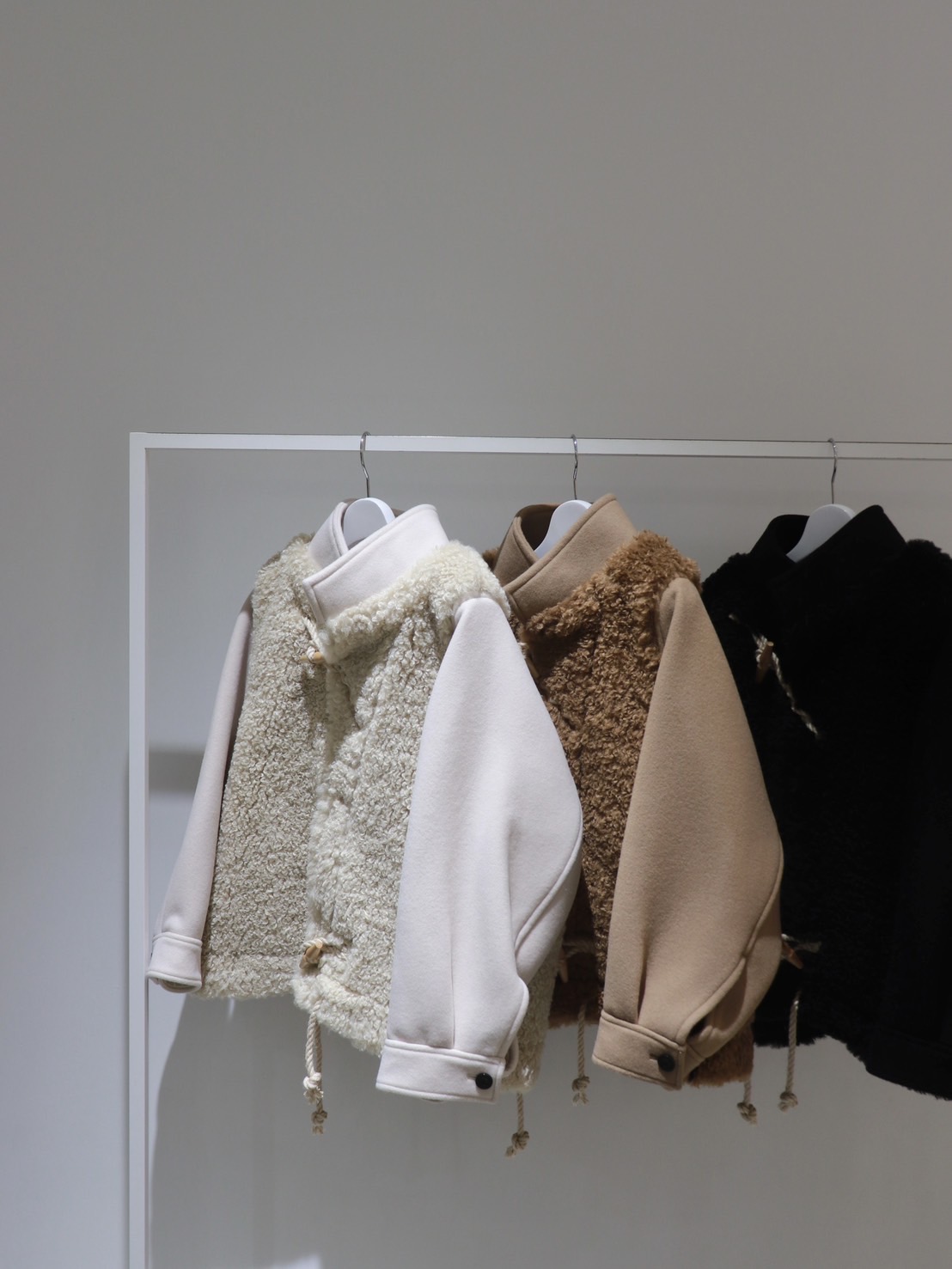 カーリーで滑らかなフェイクファーを重ね、シーズンムードを後押し。