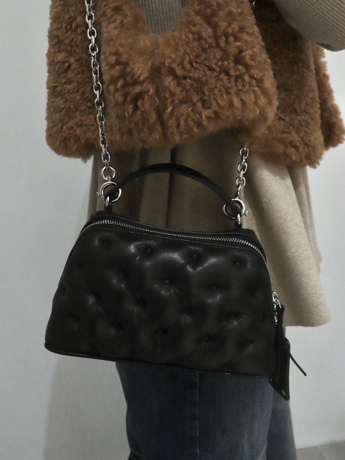 フランスのマルセイユで生まれた手縫いのキルト「マテラッセ」スタイルを模したキルティングデザイントップハンドルと着脱可能なチェーンストラップが付いたスタイルで、ジッパープルにはナンバリング ロゴのラベルがあしらわれています。