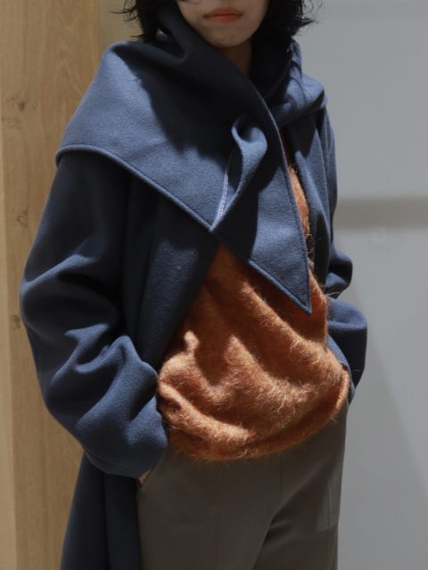 コートに付属する着脱可能なスカーフディテールは、巻き方次第で雰囲気を変えられるのがポイントです。