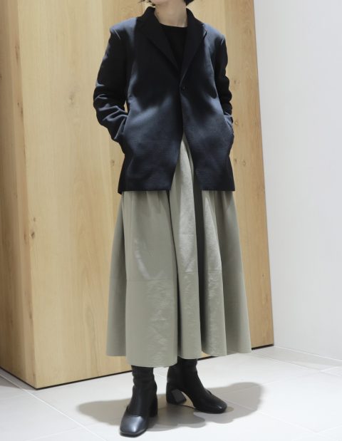 ジャケットと合せるとフェミニンとマニッシュの絶妙なバランスが魅力のスタイリングが完成します。