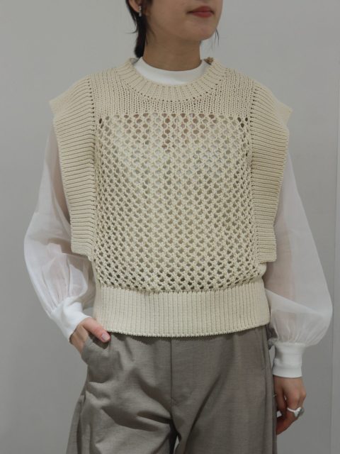 コットン素材をメッシュ状にあしらったニットベスト。