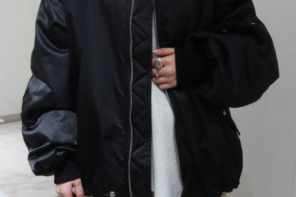 ショート丈なのでボリュームのあるボトムスにも合わせやすく、様々な着こなしが可能です。