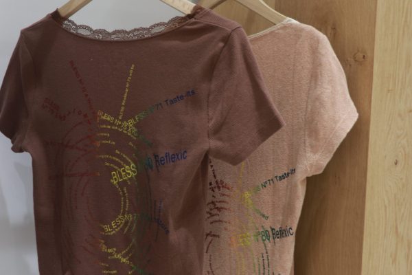 フロントプリントはベルリンを拠点に活動するアーティスト 本間亮次のペイントのグラフィックを落とし込んだデザインになっています。