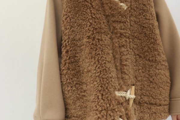 着物のようなフラットなパターンメイキングにより、通常に着用すると衿の位置が中心になるのが背中にボリュームが出る独特なシルエットになります。