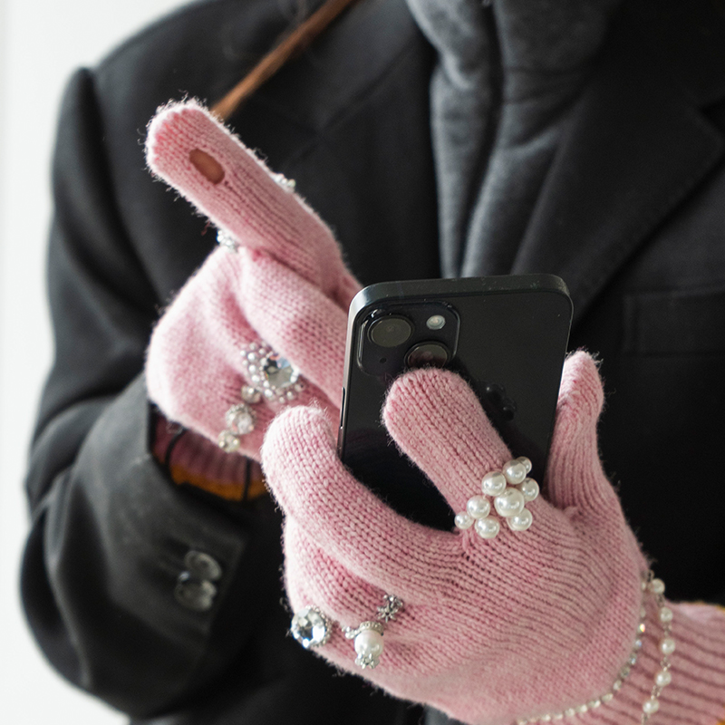 可愛いだけじゃなく実用的な所も魅力のひとつ。 指先には特殊な編みにより穴を開けているため、付けたままスマホを使えます。