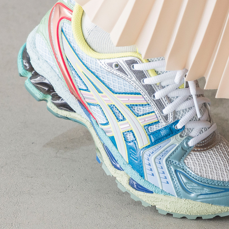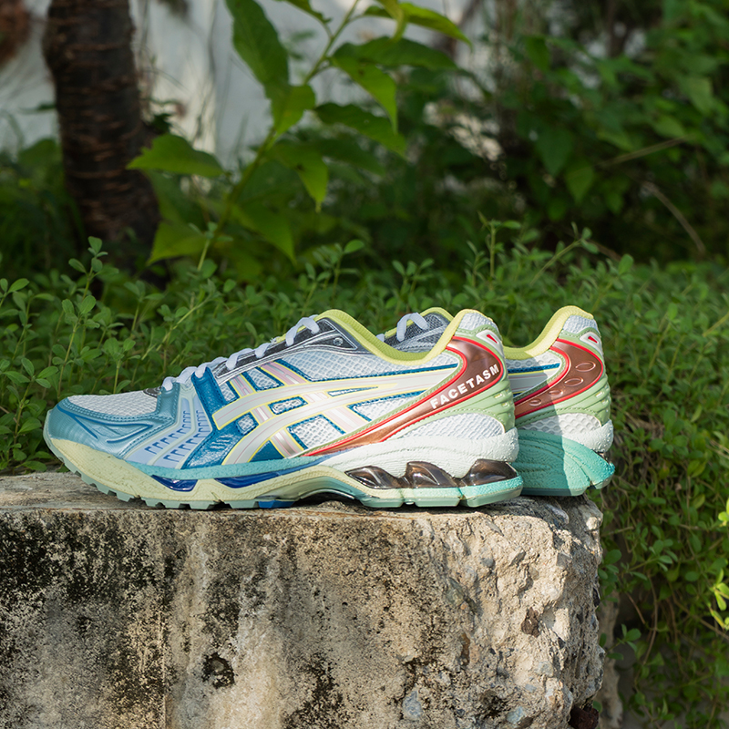 FACETASMとASICSとのコラボレーションモデル、GEL-KAYANO 14。 自然の鮮やかさや質感を表現したアートのような一足。 スタイリングの主役となりながら、実はスタイルにも合わせやすいんです。