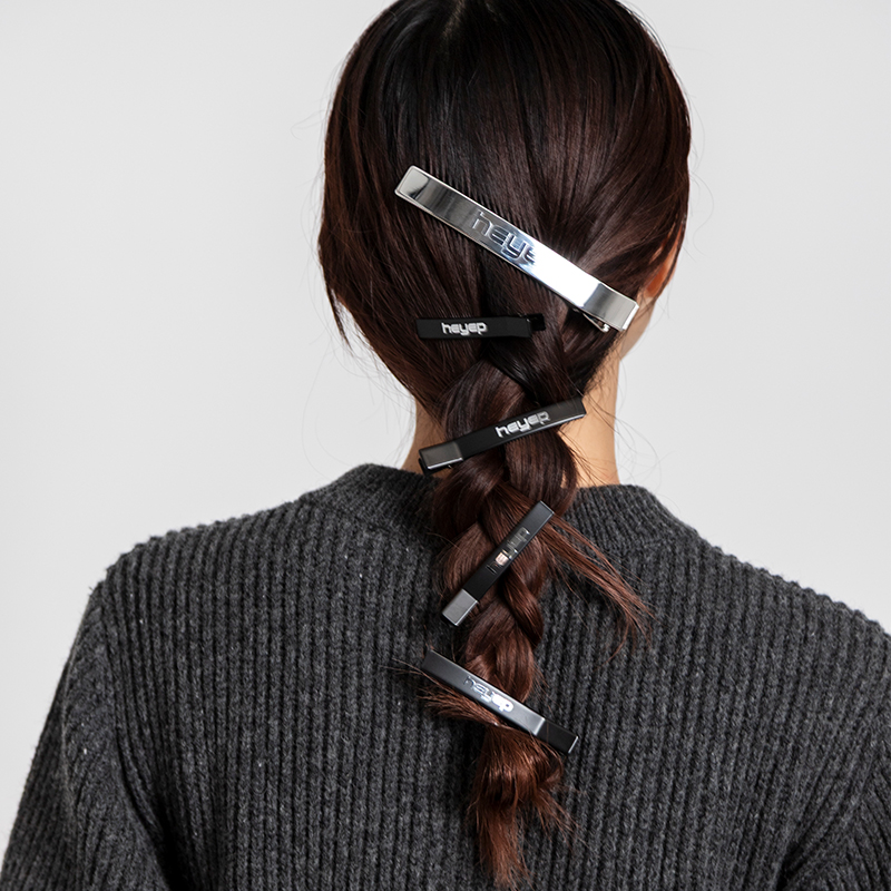 ロゴがポイントの特大サイズのヘアクリップは、スタイリングのアクセントとしても、実用性も兼ね備えていて重宝する優秀アイテムです。