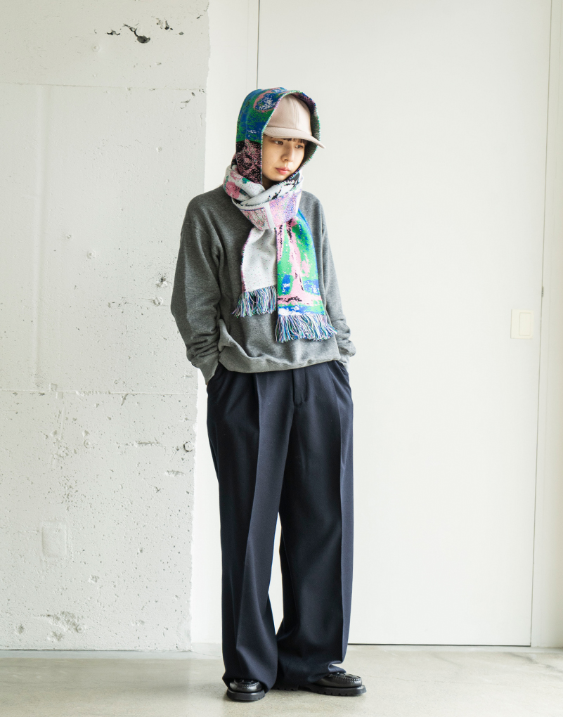 長さがあるから様々な巻き方を楽しめるのも、このマフラーのポイント。 スタイリングの一要素としてしっかり活躍してくれます。