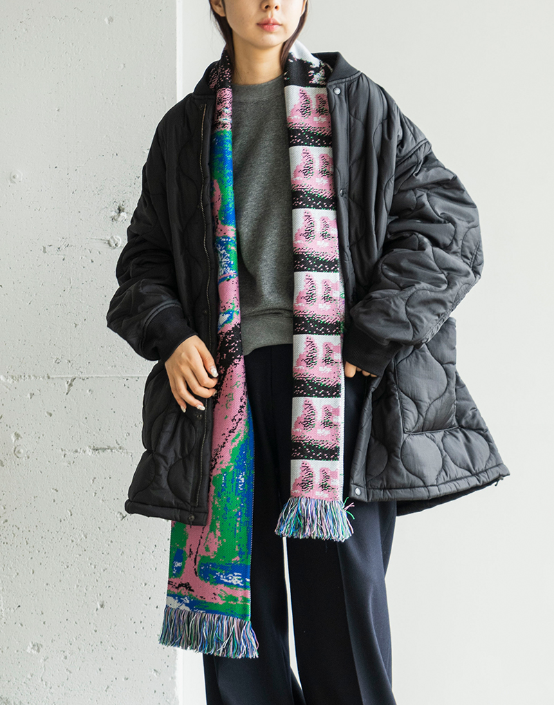 毎シーズン、存在感のあるグラフィックと印象的なカラーリングで注目を集めているモンマルトルニューヨークのマフラー。