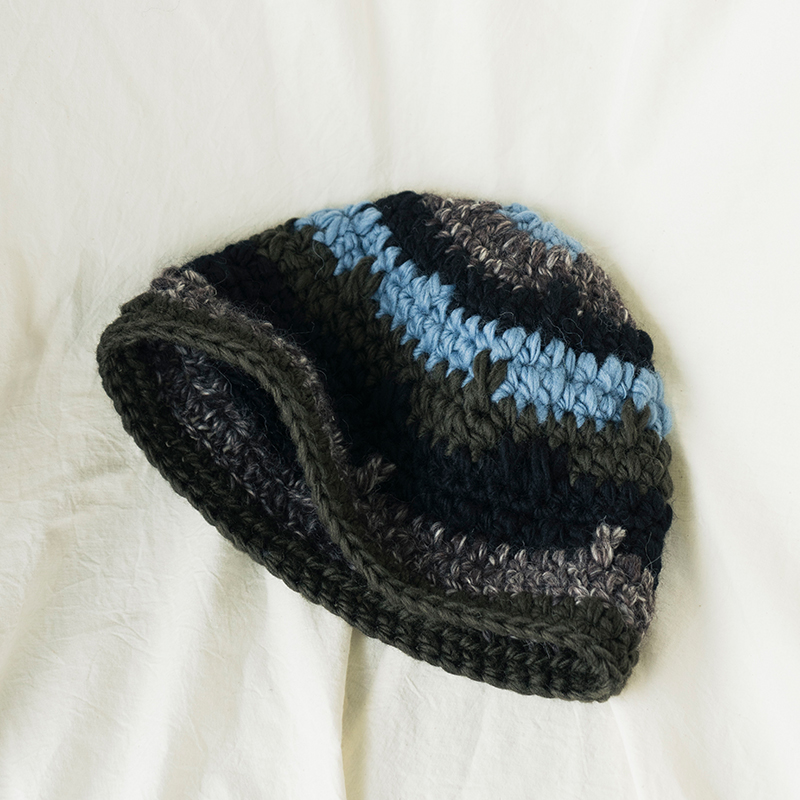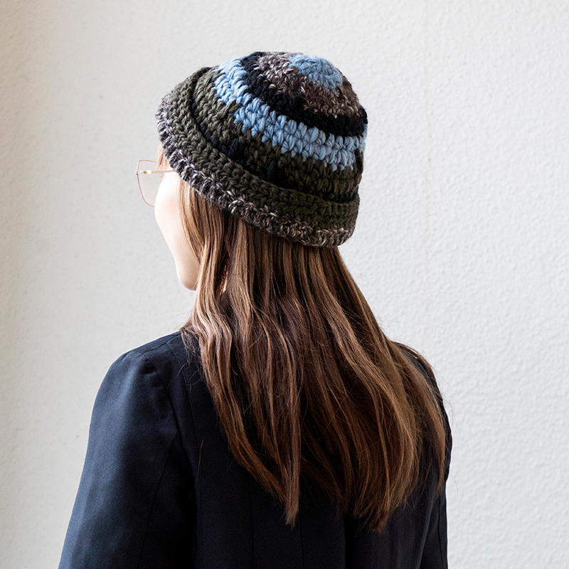 複数のカラーを使って編まれているため、髪色を選ばず被れるのもうれしい。