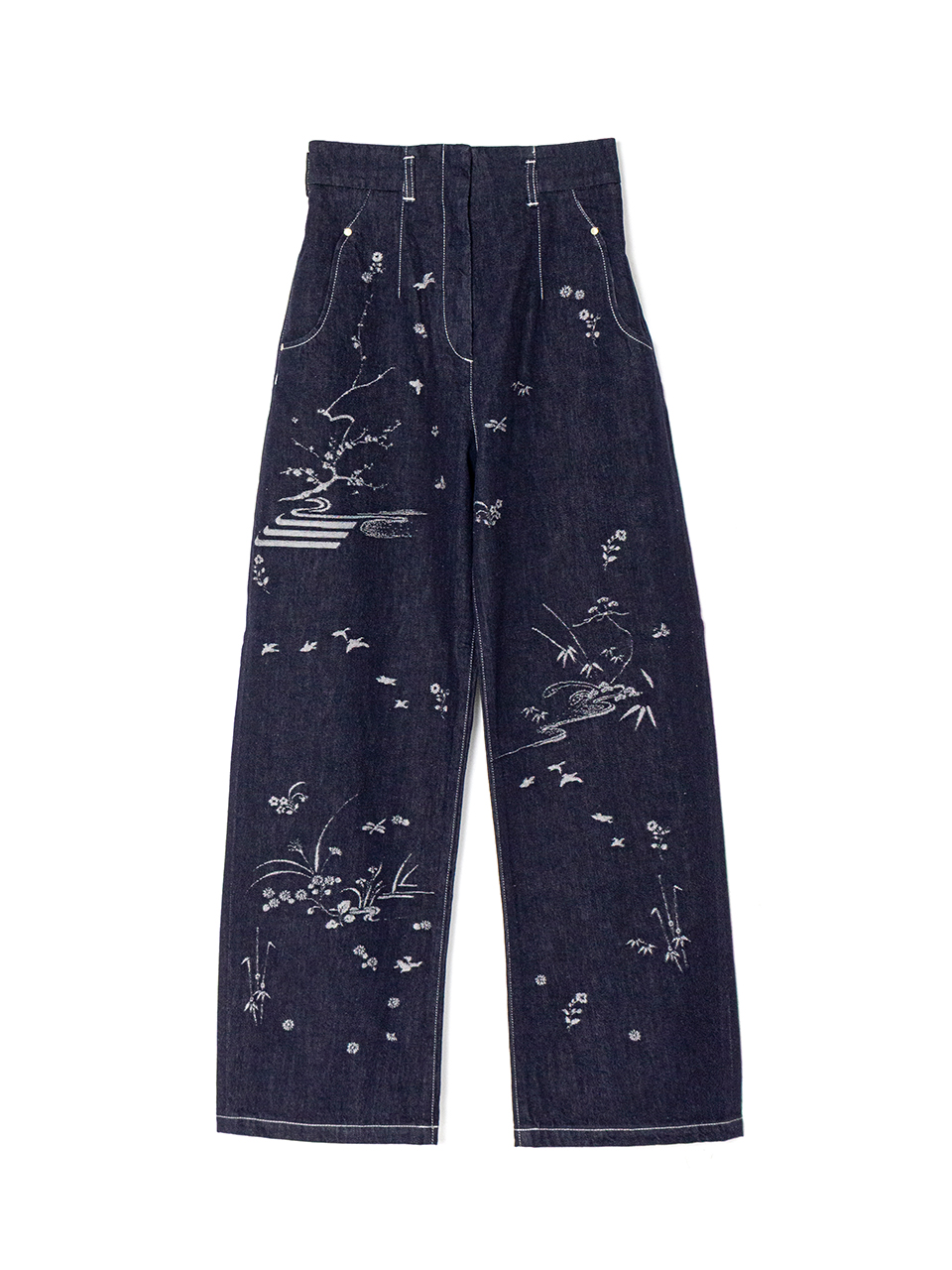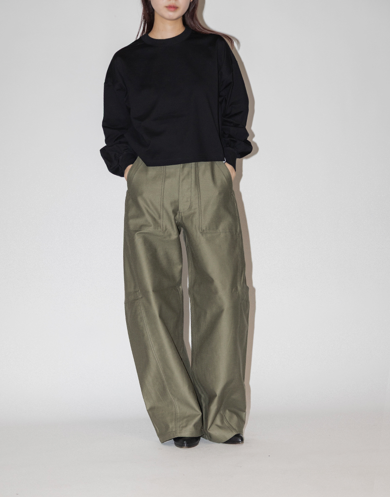 すとんと綺麗に落ちるワイドストレートがゆったりとした着心地ながらもスタイルアップを実現します。