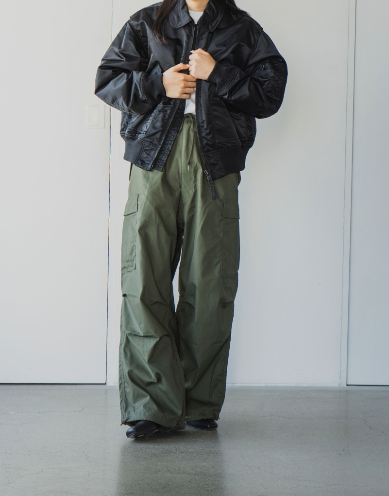 カジュアルな素材感ですが丸みのあるバレルシルエットなので女性でも履きやすい一本。