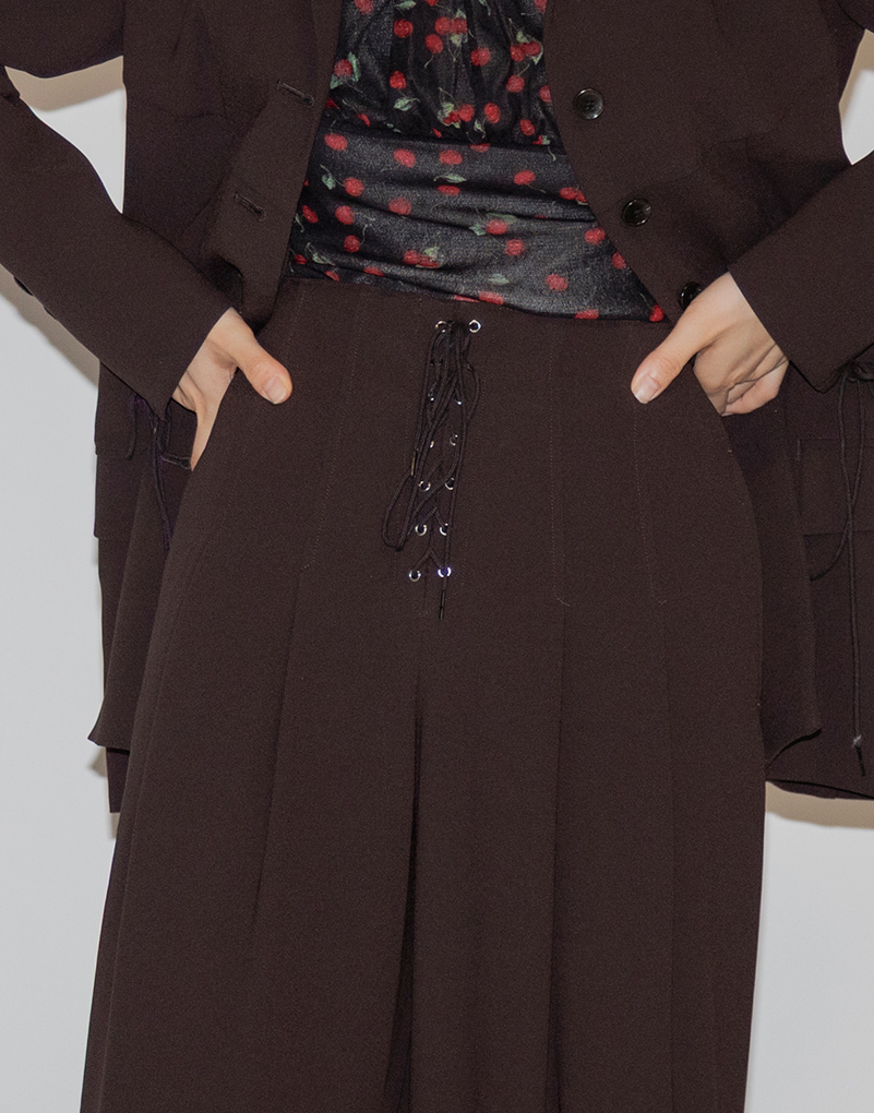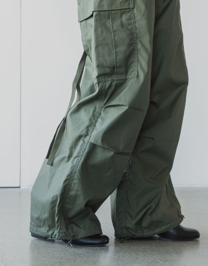 太もも部分から広がるシルエットが独特なバランスを作り出しているのが特徴です。