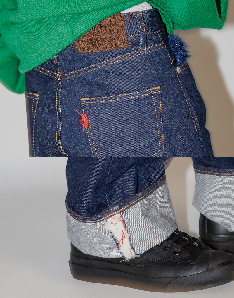 sssteinとUMBROのコラボレーションアイテムのデニムジーンズ。
