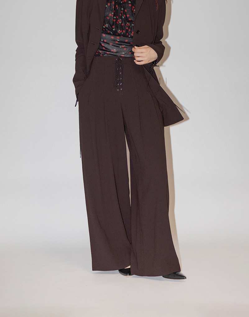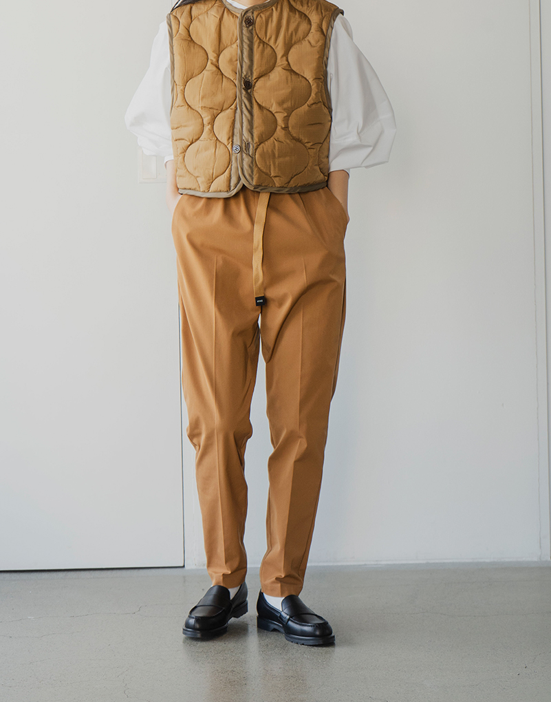 シルキーで滑らかなタッチの素材感が癖になるトラウザーズ。